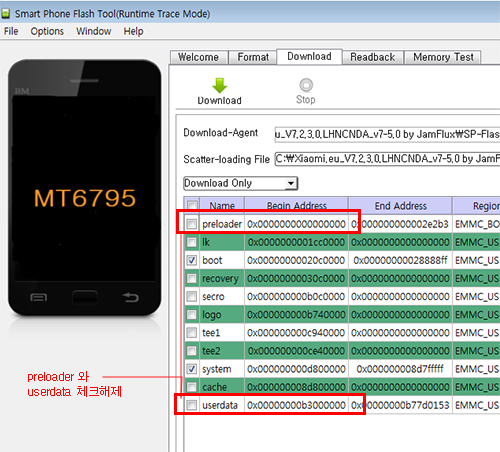 Scatter-loading ¿¡¼´Â Images Æú´õ ¾È¿¡ MT6795_Android_scatter.txt ¸¦ ¼±ÅÃÇØ ³õ½À´Ï´Ù.